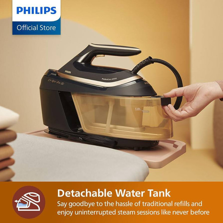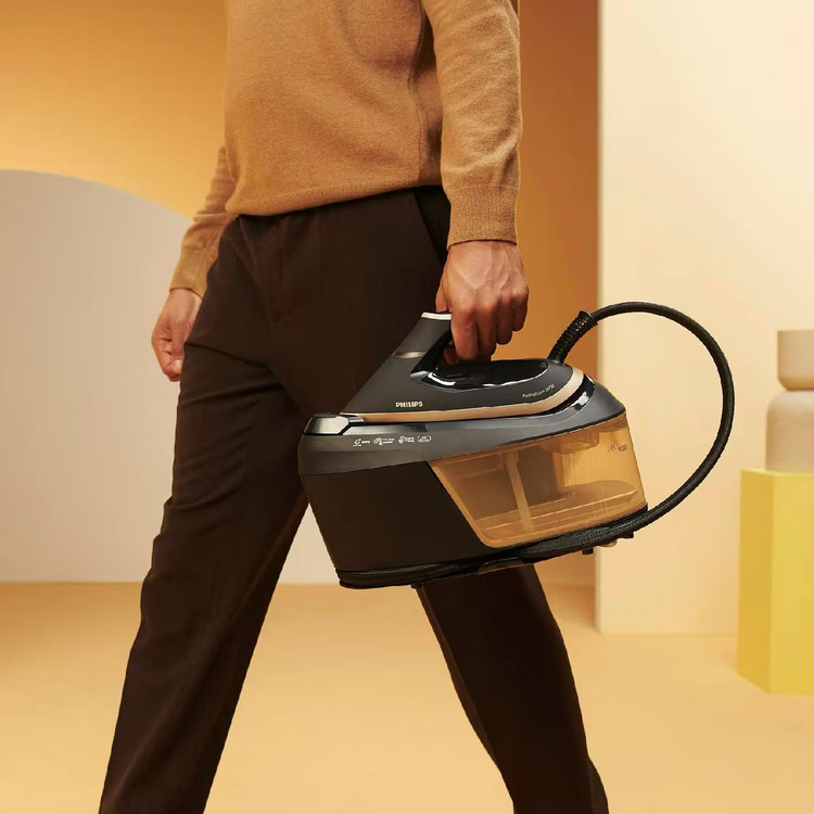 برترین برند اتوی جهان با رونمایی از آخرین سری اتو های مخزن دار انقلابی در این عرصه به وجود آورده است . اتوی مخزن دار PSG6064 فیلیپس با امکاناتی نظیر توان 2400 وات ، فشار بخار 8 بار ، قدرت بخار لحضه ای 600 گرم بر دقیقه ، قدرت بخار مداوم 130 گرم بر دقیقه ، مخزن آب جدا شونده 1800 میلی لیتری ،خاموش شدن خودکار و سنسور اخطار رسوب توانسته به مراتب از برند های رقیب خود حرفه ای تر عمل کند. این مدل دارای فناوری OptimalTEMP است ، این فناوری با تنظیم خودکار بخار و گرمای کفی برای هر نوع پارچه ، این امکان را فراهم میکند که حتی اگر کاربر اتو را روی لباس جا بگذارد هیچ نوع سوختگی ، سایه و لکه ایجاد نشود . کفی این اتوی مخزن دار SteamGlide Advanced است که از 4 لایه نانو تیتانیوم پیشرفته با روکش فولاد ضد خش ساخته شده است تا بسیار راحت روی پارچه سر بخورد و مناسب برای اتو کشی هر نوع جنسی (حتی جنس هایی با درصد پلاستیک بسیار بالا ) باشد . در این اتو تکنولوژی Smart Calc Clean به کار رفته است که در این تکنولوژی رسوب زدایی به صورت اتوماتیک توسط اتو انجام میشود و هر موقع زمان تخلیه رسوب جمع شده برسد ، دستگاه با آلارم کاربر را مطلع میکند تا کاربر به راحتی به وسیله ی ظرف مخصوصی که همراه دستگاه است رسوب را خالی کند ، با این قابلیت میتوان از هر آبی برای استفاده از این اتو استفاده کرد . شما با داشتن این دستگاه هر سه نوع اتوی ، بخار ، پرس و ایستاده را در یک محصول خواهید داشت .