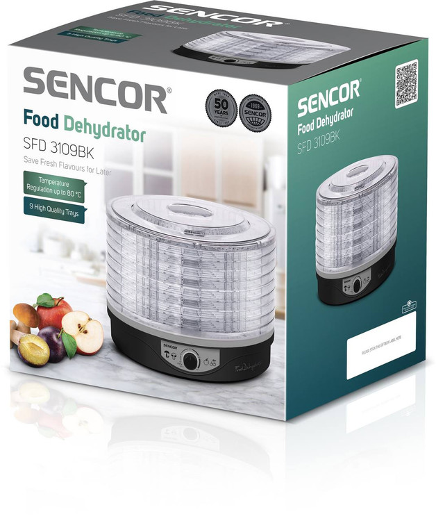 میوه خشک کن SENCOR به خاموش شدن خودکار مجهز بوده و بعد از پایان زمان خشک شدن دستگاه به صورت اتوماتیک خاموش میشود. این دستگاه سنکور نیز همانند بیشتر محصولات برند آن تحت لیسانس کشور جمهوری چک و در چین تولید میگردد.