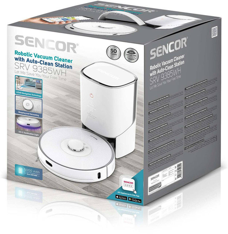 چیزی که ارزش خرید یک جارو رباتیک را بالا میبرد کارایی اتوماتیک آن میباشد. سنکور با استفاده از قطعات، فناوریها و تکنولوژیهای کاربردی، نیاز به نظارت در این جارو را تا حد ممکن پایین آورده است. چهار برنامه برای آن در نظر گرفته شدهاند تا دستگاه به طور خودکار و با الگویی مشخص، در کوتاهترین زمان و بهترین شکل ممکن نظافت را به اتمام برساند. برای هدایت آن سیستم ناوبری لیزری در نظر گرفته شدهاست که به سرعت یک نقشه از از فضای مورد نیاز را تهیه کرده و طبق آن به کار میپردازد. چندین سنسور نیز تعبیه شدهاند تا موانع، ارتفاع و… را شناسایی کرده و جارو را در مسیر درست نگهدارند. در این مدل از سنسور فوتونی استفاده شدهاست که قادر است موانع را از 10 سانتیمتری تشخیص بدهد و همچنین اشیای کوچک نیز از دید آن پنهان نمیمانند. یک سنسور نیز به مسیریابی جارو به سمت ایستگاه شارژ کمک میکند. جارو رباتیک سنکور مدل srv 9385wh همچنین قابلیت اتصال به وایفای دارد و با موبایل و از طریق اپلیکشین میتوانید از راه دور آن را کنترل کنید و تنظیمات متنوعی را بر روی آن اعمال کنید.
