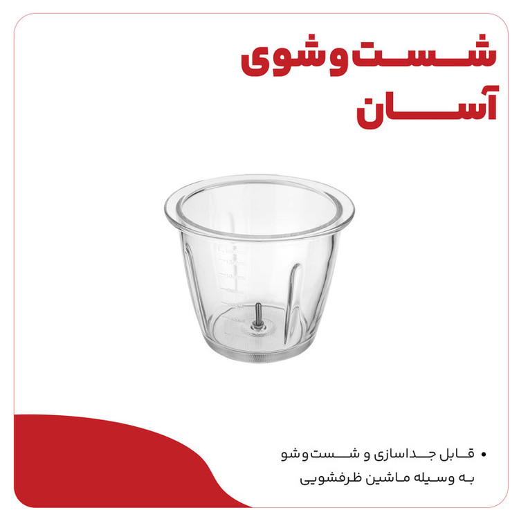 اقلام همراه محصول: پره همزن پلاستیکی، لاستیک نگه دارنده مخزن خردکن