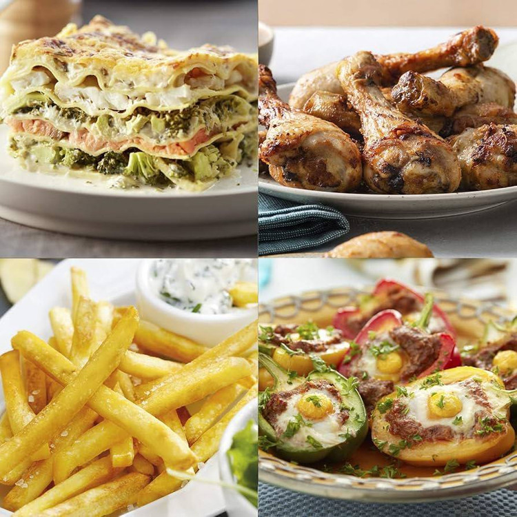 قابلیت پخت سیب زمینی – اسنک – مرغ – جوجه – همبرگر – سوسیس – گوشت – ماهی – کیک – مافین – نان تست – سبزیجات و …