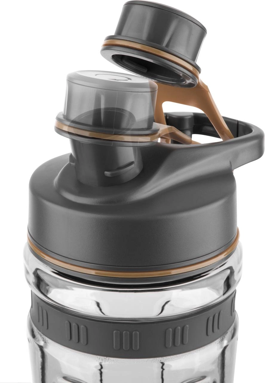 دو بطری یا پارچ 600 میلی لیتری از جنس پلاستیک تریتان و شفاف به همراه پایه موتور عرضه می گردد که این بطری ها با درب مهر و موم شده کارایی بالایی دارند. بطری ها فاقد BPA هستند و صدمه ای به سلامتی شما نمی زنند. درب بطری ها به دلیل اینکه بسیار محکم هستند، اجازه نمی دهند مواد غذایی از درون ظرف به بیرون بریزد.