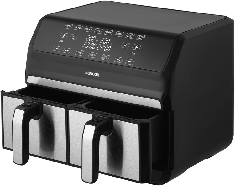 سرخ کن سنکور مدل 9500SS یک جدیدترین سرخ کن برند سنکور است که بصورت دوقلو با دو سبد مجزای 4 لیتری طراحی شده است. شما این امکان را دارید بصورت همزمان دو نوع غذای مختلف را در هر یک از سبدها آماده کنید. ظرفیت این سرخ کن برای 10 الی 12 نفر کاملا مناسب و ایده آل است و با 8 برنامه پیش فرضی که دارد شما از تنظیمات دستی دما و زمان پخت مواد غذایی پرطرفدار و پرکاربردی بی نیاز میکند. در ادامه توضیحات کاملی درمورد ویژگی ها، مزیت ها و تاثیرات ارزشمند این مدل سرخ کن سنکور ارائه میدهیم.