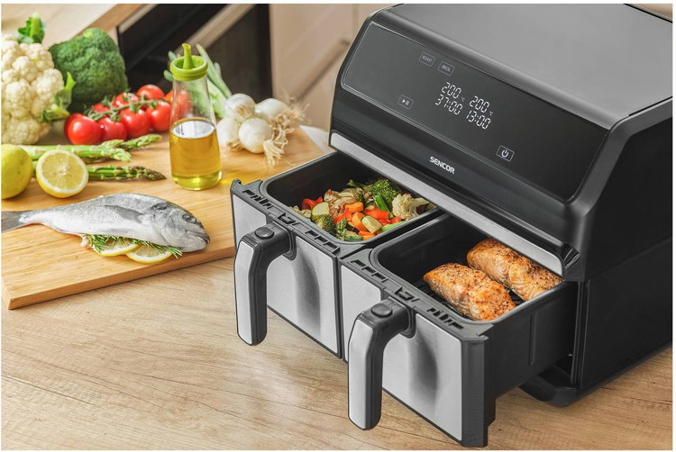 این مدل سرخ کن با بهرهگیری از تکنولوژیهای بروز، استفاده از روغن را به پایینترین میزان ممکن میرساند و در آماده سازی غذای کاملا سالم و رژیمی به شما کمک میکند و علاوه بر کوتاه کردن زمان آشپزی، انجام این کار را برایتان ارزشمند میکند طوری که اصلا گذشت زمان را متوجه نمیشوید! این دستگاه برای افرادی که میخواهند همزمان در سرخ کن دو نوع ماده غذایی برای مثال مرغ و سیب زمینی را آماده کنند فوق العاست!