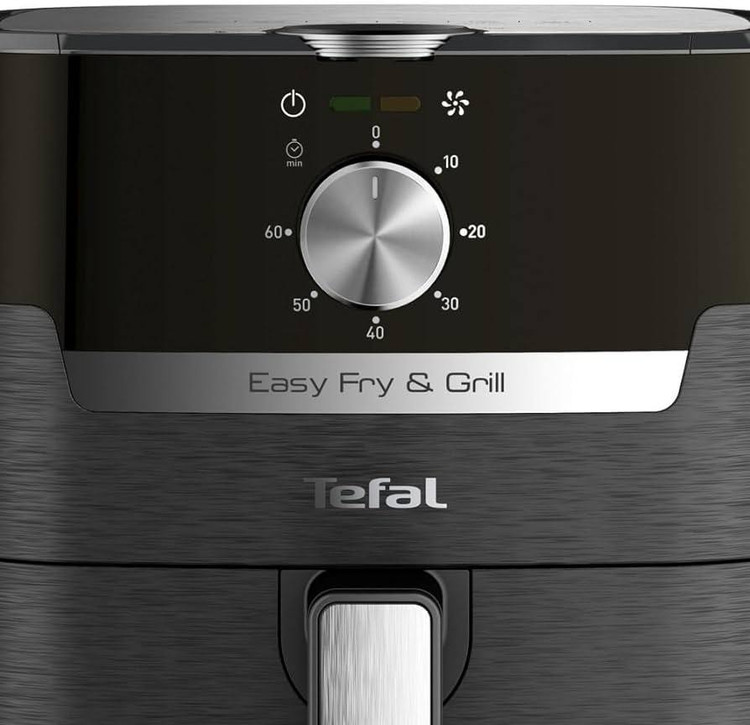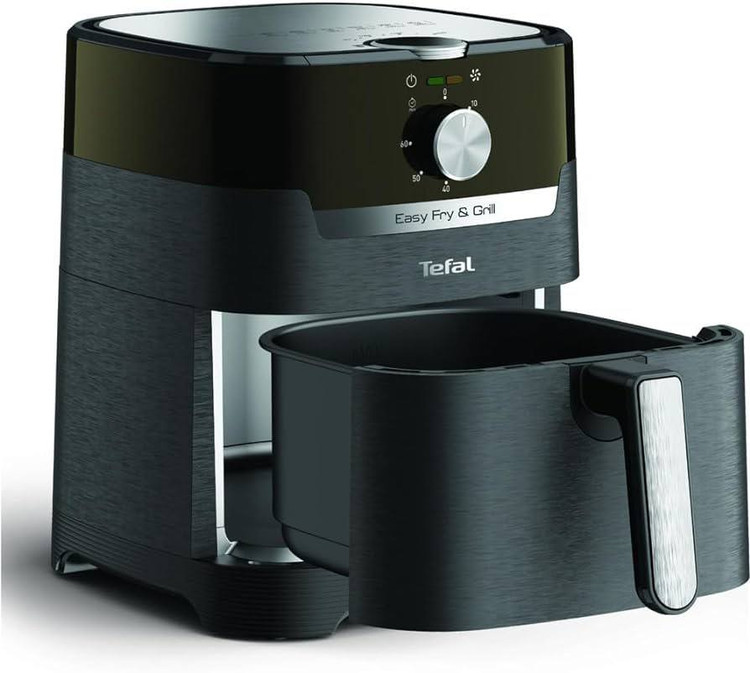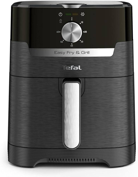 سرخ کن تفال مدل EY51 به رنگ مشکی مات با دستگیره های نقره ای و بدنه ای از جنس استیل و پلاستیک طراحی شد
