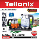 شرکت تلیونیکس یکی از تولید کنندگان بنام لوازم خانگی می باشد. این شرکت در تولید انوع لوازم خانگی سابقه درخشانی دارد و به دلیل کیفیت ساخت بسیار بالا ، طراحی های متنوع و نوآوری از استقبال زیادی بین مردم برخوردار است. چای ساز تلیو نیکس مدل TTM5000 دستگاه کاربردی است که از 3 قطعه اصلی کتری ، قوری و صفحه ی گرم نگهدارنده تشکیل شده است که قابلیت حفظ گرما را دارد.تنظیمات دستگاه از طریق دکمه های تعبیه شده روی صفحه کتری که دیجیتال است قابل دسترسی است که قابلیت تنظیم دما را دارد. به گونه ای که می توان برای گرم کردن چای قهوه انواع دمنوش و غیره استفاده کرد و دمای کارکرد از طریق صفحه led دستگاه قابل مشاهده است. کتری و قوری این چای ساز به ترتیب دارای ظرفیت 1.7 لیتر و 1/2 لیتر می باشد. این چای ساز دارای سیستم جوش سریع می باشد. سیستم ایمنی چای ساز در صورت تمام شدن آب کتری کارکرد دستگاه را به صورت خودکار متوقف می کند و از داغ شدن بیش از حد دستگاه جلوگیری می کند. این چای ساز دارای توان 2200 وات است.