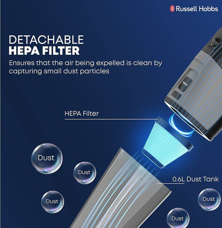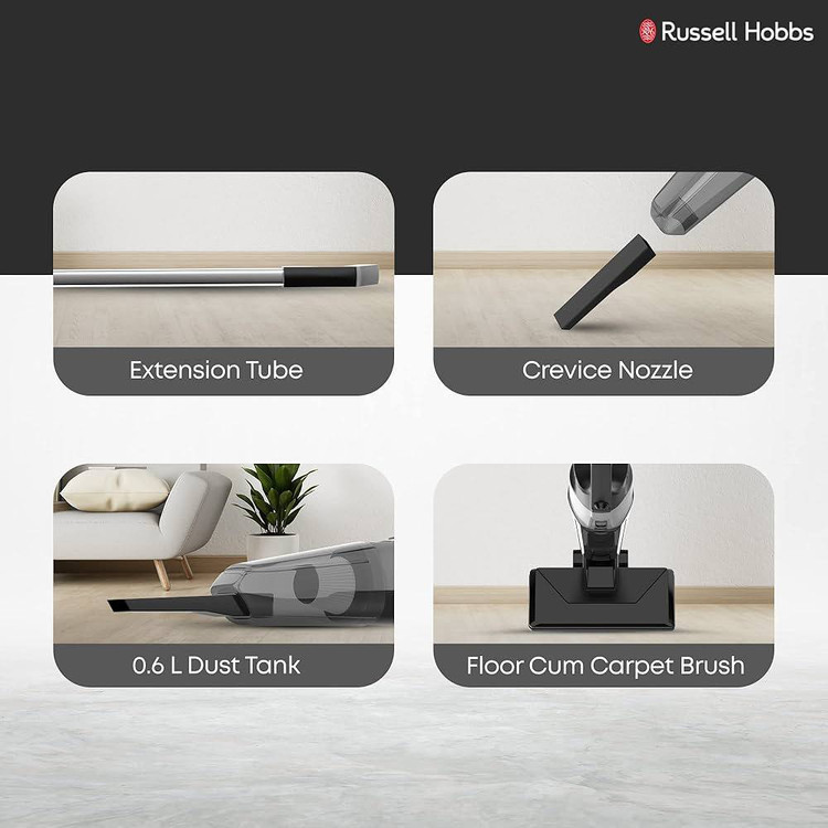 جاروبرقی پرتابل راسل هابز با وزن تنها 1.6 کیلوگرم، به راحتی قابل حمل و جابجایی است. این ویژگی به شما امکان میدهد تا به راحتی تمام نقاط خانه را بدون خستگی تمیز کنید.