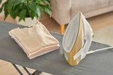میزان بخاردهی این مدل نیز با اینکه از نوع مخزنی نیست، اما مناسب است. به طور پیوسته مقدار بخار خروجی برابر است با 45 گرم در دقیقه. با فشار دادن دکمه بخار لحظهای نیز این میزان به 190 گرم در دقیقه میرسد. این میزان از بخار برای از بین بردن چین و چروک به طور موثر کافی است. شما همچنین قادر خواهید بود که میزان بخاردهی لحظهای را کم یا زیاد کنید. با قابلیت بخاردهی عمودی هم که دارد میتوانید پرده یا لباس هایی که از رگال آویزان هستند را اتو کنید.