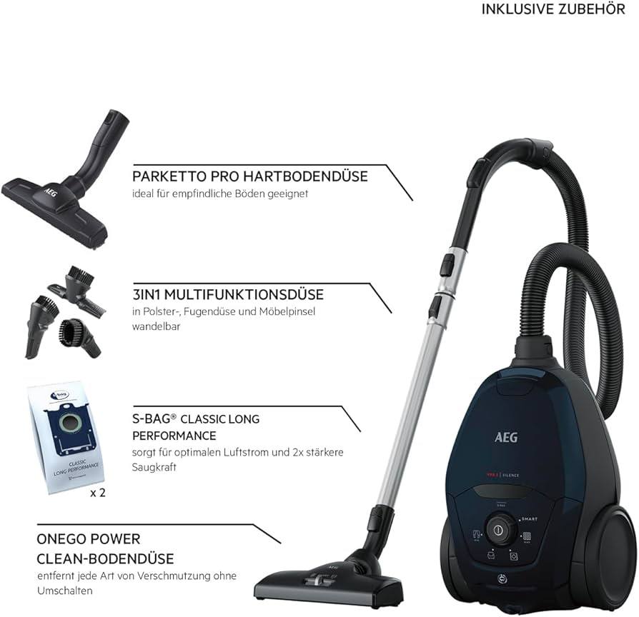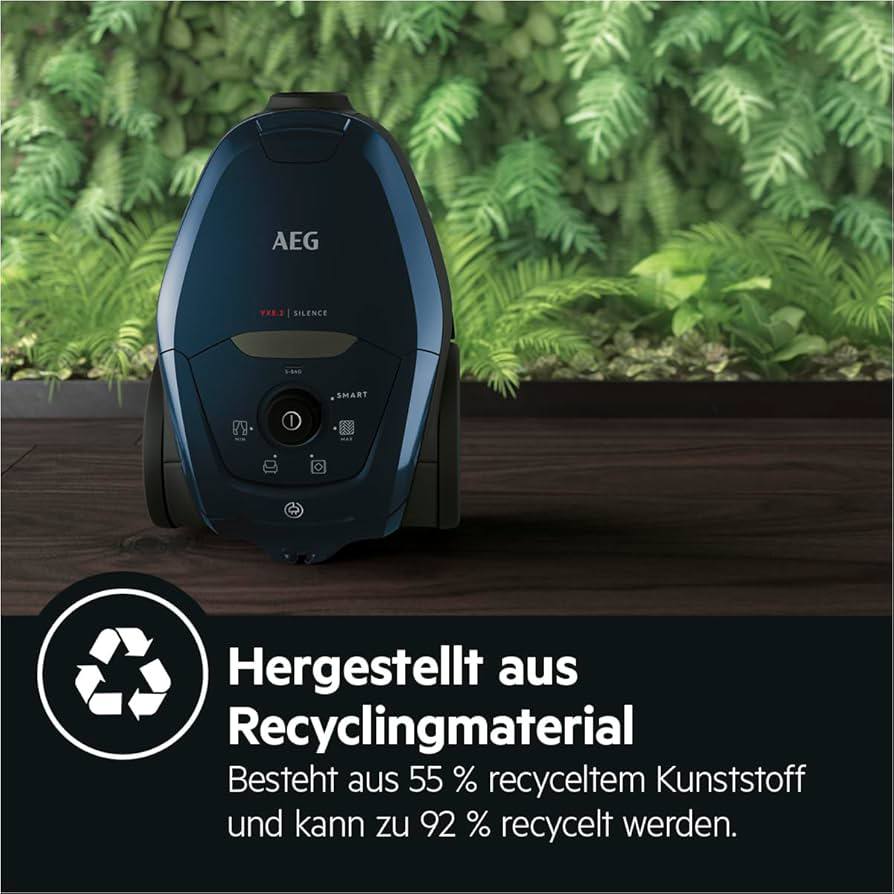 جاروبرقی AEG VX82‑1‑2ST یا همان **VX8.2 Silence**، با طراحی شکیل، مصرف انرژی بهینه و صدایی بسیار کم (~57 دسیبل)، انتخابی حرفهای برای خانههای مدرن است. این دستگاه با 55٪ پلاستیک بازیافتی تولید شده و دارای فناوریهایی است که تمیزی، راحتی و پایداری را همزمان ارائه میدهد
