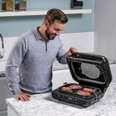 Ninja Foodi MAX AG551 تنها یک گریل نیست. این دستگاه دارای ۶ حالت پخت مختلف شامل گریل، سرخکردن با هوا، پخت، کباب، خشک کردن و گرم کردن مجدد است. این ویژگیها امکان آمادهسازی انواع غذاها، از استیکهای گریلشده تا شیرینیهای خانگی و حتی سبزیجات خشکشده را برای شما فراهم میکند.