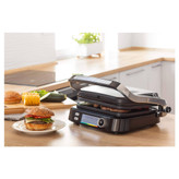 این گریل نیمه صنعتی سنکور دارای 2 صفحه صاف برای سبزیجات و مدرج برای گریل کردن است و قابلیت گریل کردن انواع مواد غذایی مانند: گوشت، ماهی، مرغ، سبزیجات و غیره را توسط صفحات گریل با پوشش نچسب دارد. این گریل سنکور مجهز به 3 حالت مختلف گریل بسته، باز 90 درجه و باز 180 درجه را داشته و بهترین عملکرد دارد. این دستگاه همچنین دارای 7 برنامه مختلف (همبرگر – ماهی – استیک – سوسیس – مرغ – بیکن – یخ زدایی) جهت کاربردهای مختلف است و امکان گریل کردن بدون نیاز به اضافه کردن روغن را دارد. لازم به ذکر است که این گریل سنکور دارای سینی جمع آوری روغن در زیر دستگاه با قابلیت جابجایی جهت تمیز کردن بهتر است.