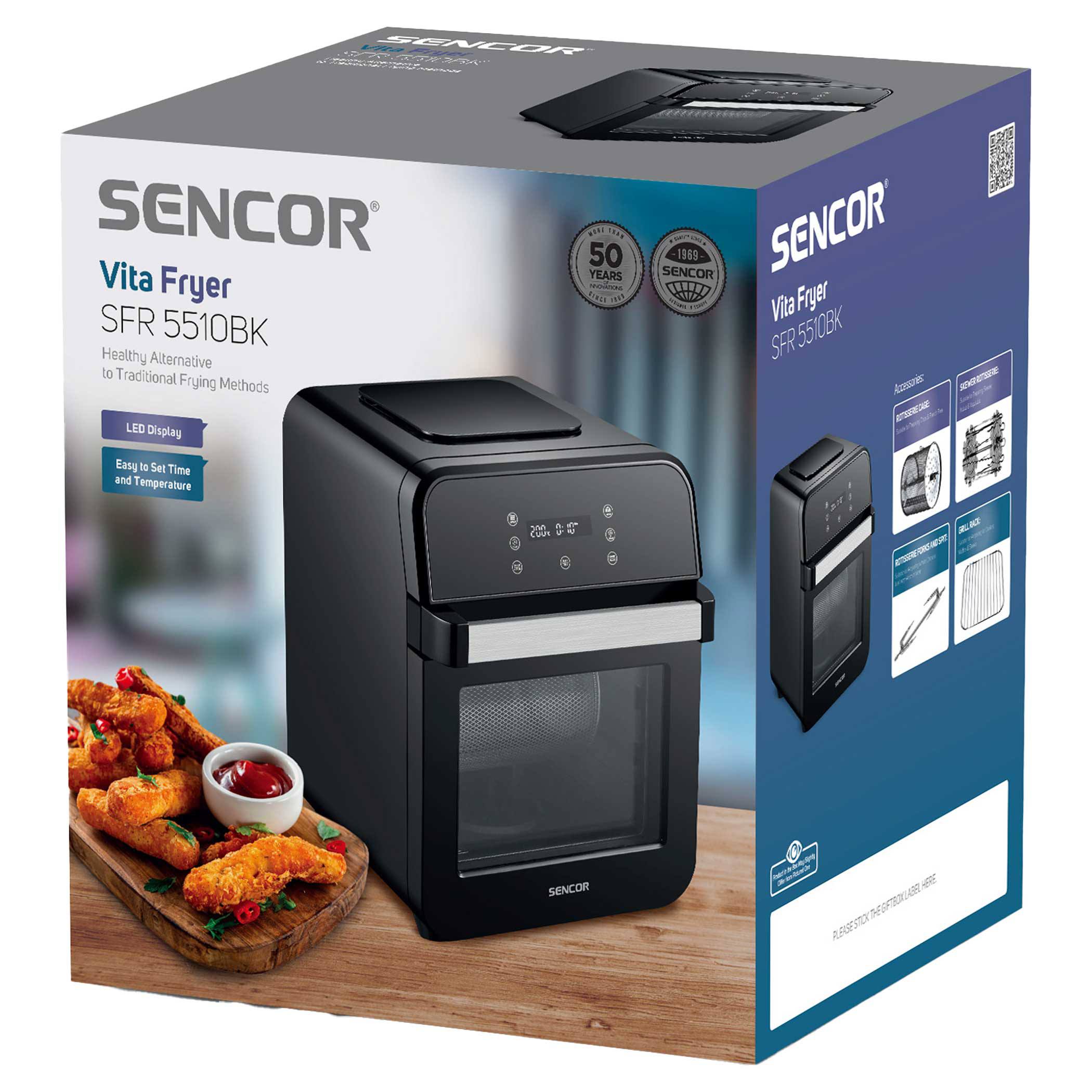 این سرخکن دارای تایمر تا ۳۰ دقیقه و سیستم خاموشی خودکار است. پوشش نچسب سبد و قابلیت شستشوی قطعات در ماشین ظرفشویی تمیزکاری دستگاه را راحت میکند. دمای قابل تنظیم از ۸۰ تا ۲۰۰ درجه به شما این امکان را میدهد انواع خوراکیها را با درجه پخت دلخواه تهیه کنید. اگر به دنبال یک سرخکن جمعوجور، کممصرف و مدرن هستید که طعم عالی غذا را حفظ کند، SFR 5510BK انتخابی عالی برای آشپزخانه شما خواهد بود.