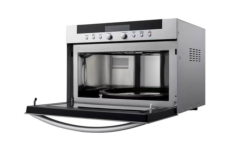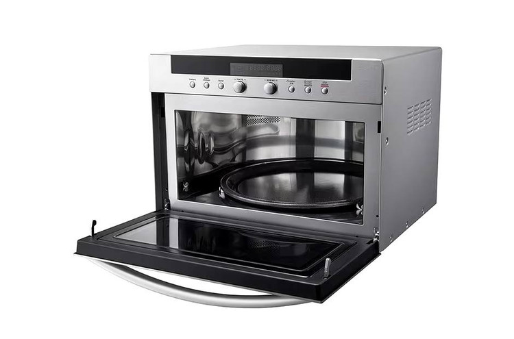 در پایین پنل لمسی دو عدد ولوم چرخان در وسط و شش دکمه فیزیکی که به ترتیب در هر طرف سه عدد قرار گرفتهاند وجود دارد، تا شما قادر باشید به دلخواه خود برنامههای مورد علاقه خود را اعمال نمایید. در پایین آنها نیز درب دستگاه قرار گرفته است که توسط دستگیره هلالی شکل باریک باز میشود. این درب با کشیدن به جلو باز شده و با فشار دادن دوباره در جای خود قرار میگیرد و بسته میشود. درب از فلز و شیشه ساخته شده تا در مواقع لزوم داخل ماکروویو دیده شده و تنظیمات لازم اعمال در رابطه با طبخ غذا اعمال گردد. با باز شدن درب با حفره گرد داخلی روبرو میشوید. طراحان ال جی در طراحی فضای داخلی سولاردوم گوشهها را حذف کرده و فضایی گرد و دایرهای شکل با ظرفیت گنجایش 38 لیتر را برای شما ایجاد کردهاند.